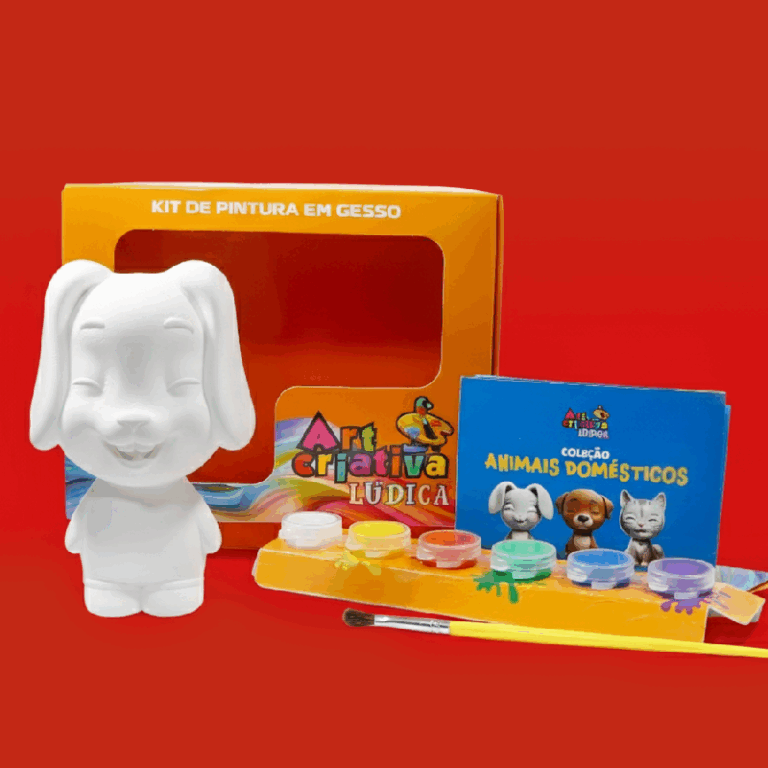 O Kit de Pintura – Bolinha, o Cãopanheiro da coleção Animais Domésticos é perfeito para despertar a criatividade e o carinho das crianças. Feito em gesso branco atóxico, ele é seguro e ideal para ser colorido com as tintas guache inclusas no kit. Com um pincel macio e seis cores vibrantes, os pequenos artistas podem soltar a imaginação e criar momentos inesquecíveis.