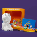 O Kit de Pintura – Valentia, a Guardiã Encantada traz um unicórnio elegante, de olhar nobre e pose protetora. Essa peça desperta o senso de cuidado e força nas crianças, incentivando a criatividade com um toque de fantasia. Com tintas guache e pincel ideal para pequenas mãos, é perfeita para brincar e decorar!